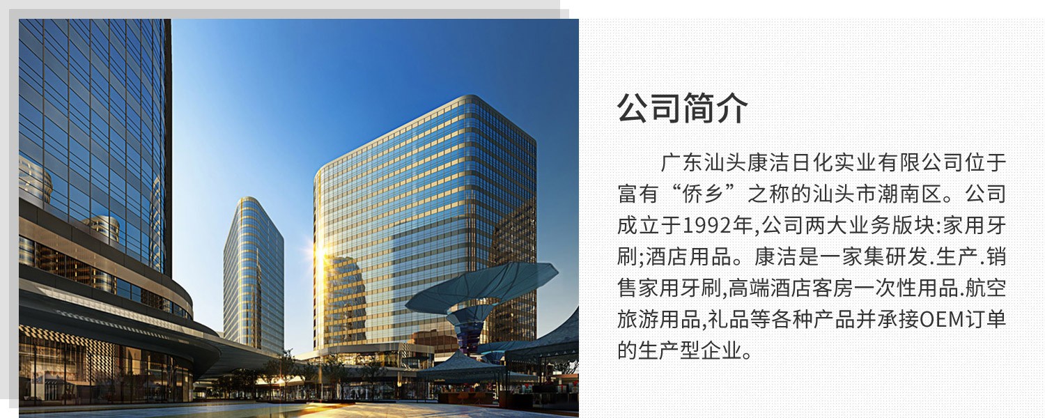 • 汕頭康潔日化實業有限公司是一家集研發(fā).生產.銷售高端酒店客房一次性用品等各種產品并承接OEM訂單的生產型企業。